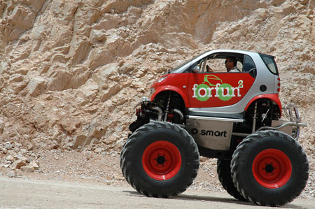 DaimlerChrysler has always had an unusually large range of off-road vehicles - from the M-Class to the G-model and the Unimog. One look at the smart forfun2 (pronounced smart for-fun to the second) and you see straightaway that it is based on a Mercedes-Benz Unimog 406 series.