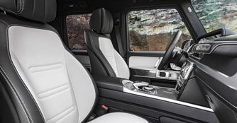 With its unmistakable character and high-quality appointments, the G-Class has always managed to combine off-road capability and luxury in a particularly harmonious way. Even in its standard specification, the G-Class's timeless and authentic open-pore wood trim gives it an air of classical elegance. Its stylish details include the generous use of high-quality metal or carbon fibre trim, and its leather seats.