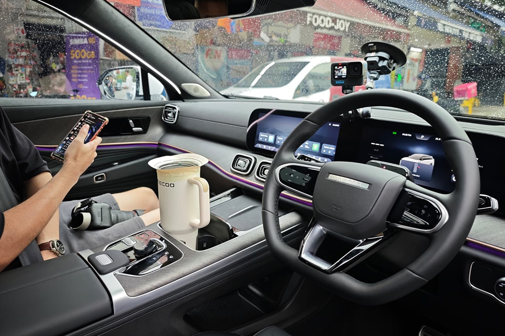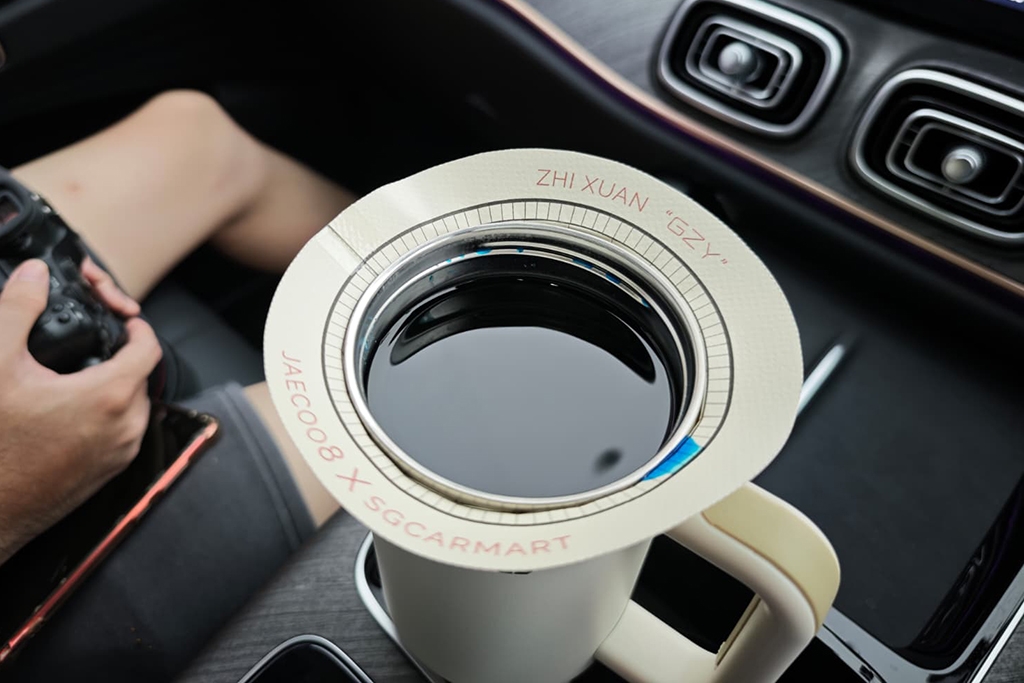 In order to demonstrate the Jaecoo 8's trick suspension system, members of the media were invited for a special preview of the car. The challenge of the day was to drive through South Buona Vista Road (also known as '99 Bends' due to its numerous sharp curves) without spilling water from a tumbler placed within the cupholder of the car.