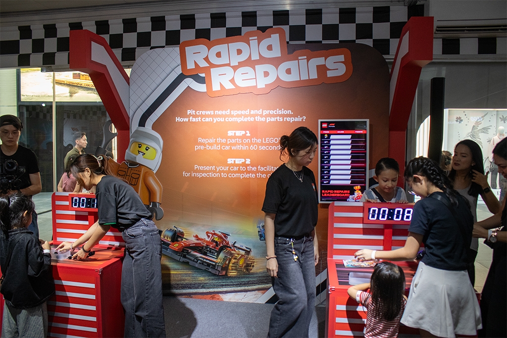 The third station, Rapid Repairs, requires participants to build their LEGO F1 Speed Champion race cars within 60 seconds, mimicking the time crunch pit crews face on race days. Once assembled, participants will receive another punch hole on their mission card.