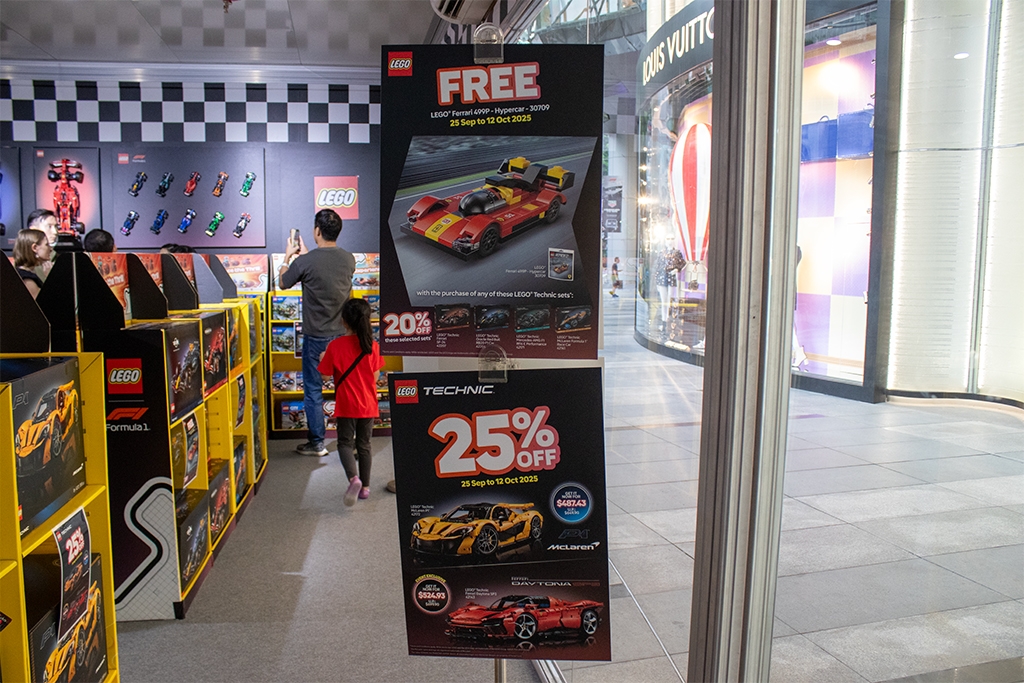 In addition, LEGO will also be offering event exclusive promotions for its "Pit Shop" shoppers who spend various amounts at the brand's pop-up shop, with prizes such as a Singapore-exclusive LEGO Red Car and a LEGO Acrylic Display Box up for grabs.
