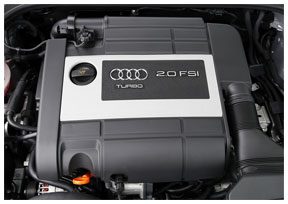 | • | The direct-injection four-cylinder turbo or 'TFSI' engine has a displacement of 1,984 cm3, and combines FSI petrol direct injection, which Audi developed, with exhaust-driven turbocharging. An international jury of experts voted it "Engine of the Year" for two years in succession, in 2005 and 2006 |