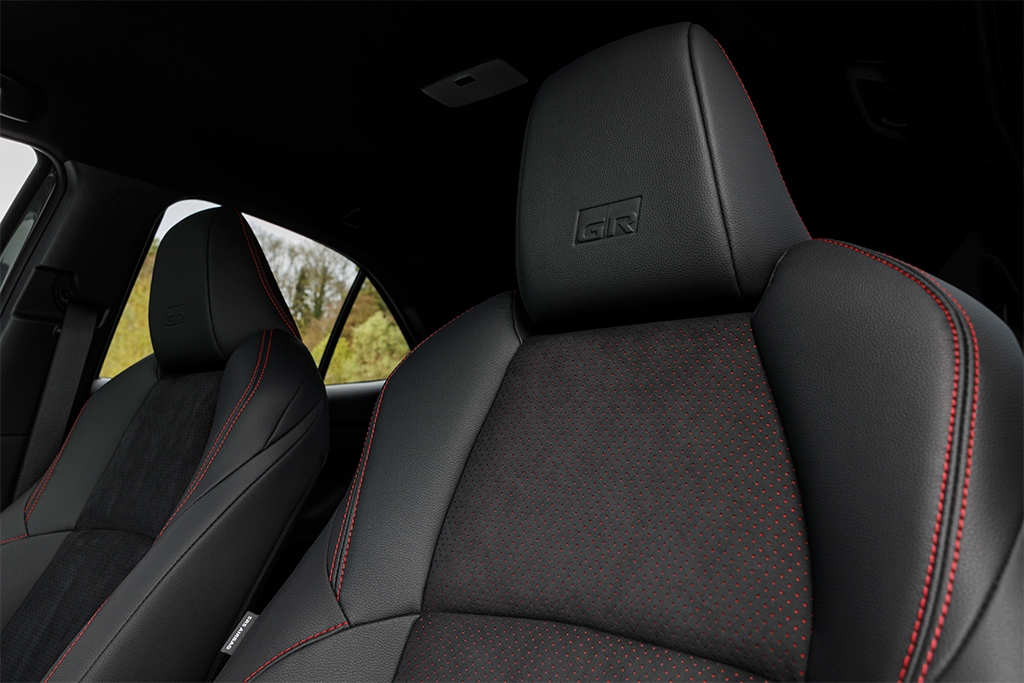 Inside, GR sport exclusive suede type sports seats with grey upholstery and red stitching offer a premium feel. The GR logo is plastered on the front headrests and steering wheel, and GR Sport-specific gunmetal silver trim inserts can be found in the doors and instrument panel.