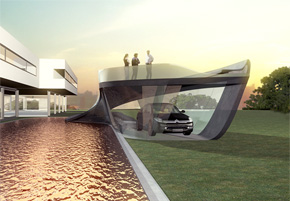 Reflecting the technical finesse of the Citroën C6, the multi-functional garage not only makes a bold, spatial statement, its tectonic design provides the owner with a useable roof terrace and a unique 'man-made landscape' to adjoin their home.
