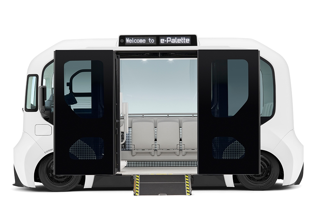 The e-Palette has features such as low ground clearance and an electric ramp that allows wheelchair users to board and exit independently. In addition, by equipping it with a variety of devices, it will be able to serve different purposes throughout the day.