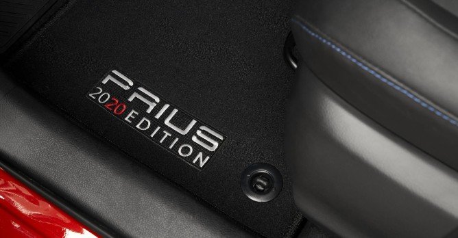 The 2020 Edition model includes black inserts for the 17-inch alloy wheels, blackout head light components and trim, B-pillars and mirror housings. Unique to the Prius 2020 Edition are a '2020' insignia key fob and floor mats, as well as black shift knob and interior A-pillar trim and smoked HVAC vents.