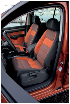 The third member of Cross family has now also been available for order since the beginning of the year: the CrossTouran. The strikingly styled, front-wheel-drive Touran now emerges as a practical and lifestyle-oriented vehicle. Major new features are the additional ground clearance (12 millimeters) and a variety of visible body elements. Particularly conspicuous are the new front spoiler in a "matt chrome" look, silver-anodized roof rails and dark headlamp mounts; lower bumper sections, side skirts, wheel arches and side protective molding are made of robust, high-quality composite material. The impressive standard equipment package includes both fog lights and a range of interior details such as the unique CrossTouran steering wheel in perforated leather, the fold-down passenger-seat backrest with table and through-load feature, and folding tables on the backs of the front seats. Another striking feature is the mixed tyre arrangement; 6.5-inch wide and 17-inch diameter alloy wheels with 215/50 tires at the front combined with 8-inch wide, 17-inch alloy wheels with 235/45 tyres at the back underline the unique visual appeal of the CrossTouran.