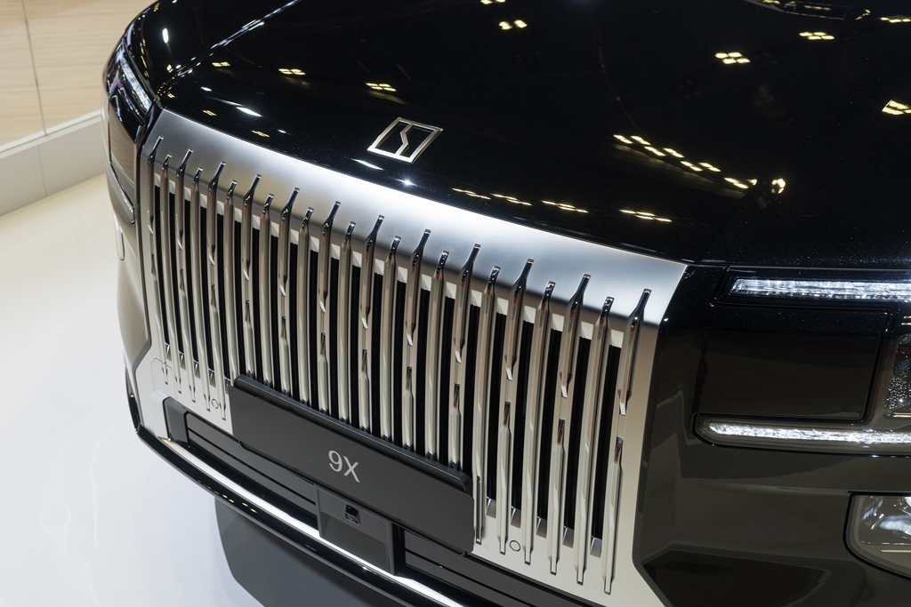 But it's crucially also its styling that gives it presence, with its large, slatted chrome grille calling to mind the Rolls-Royce Cullinan. Elsewhere on the exterior, the 9X is all perpendicular brawn, with its C-shaped day time running lights, and two horizontal tail light bars connecting with each other at the edges of the tailgate. When we first saw the car at Auto Shanghai 2025, we learned that there are apparently more than 42,000 tiny laser-engraved, diamond-cut lamps dotted all over the lights up front and at the rear.