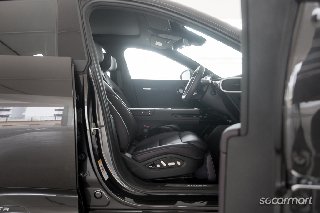 Once you get used to the futuristic elements and take a seat within, you'll start to realise what I mean when I said the AVATR 07 is the exact opposite of intense drivers' cars. The front seats are plush and comfortable, offering all sorts of adjustments that you can think of, including a retractable calf/leg rest.