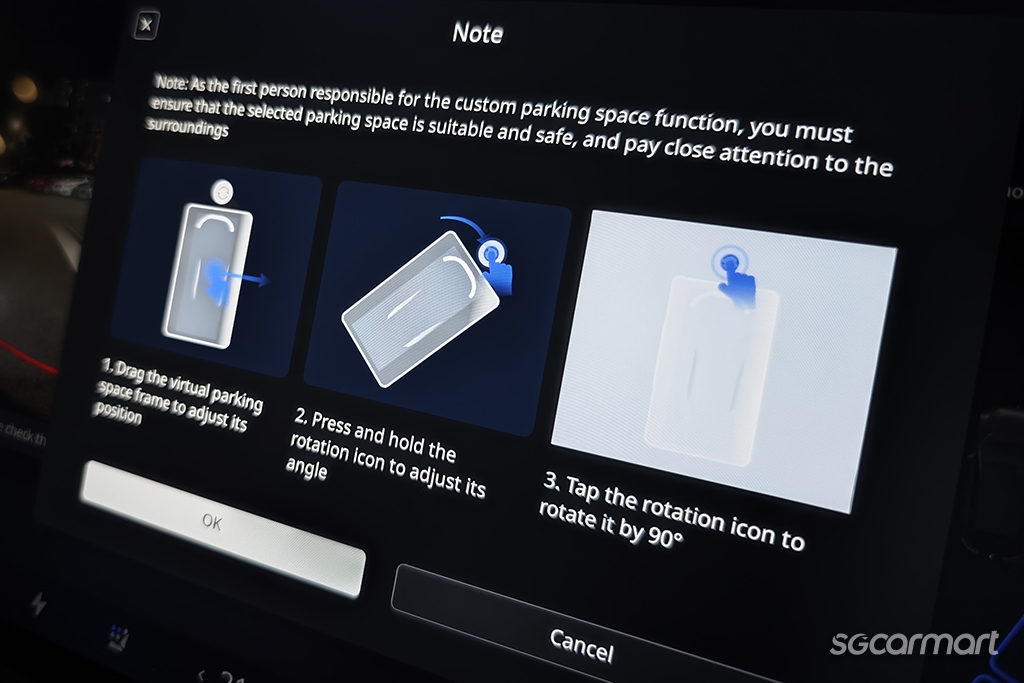 Not only does it park itself accurately in the lot, it also lets you choose to park the car head or rear in, to flush the car to the left or right side, or keep it in the centre of the lot, and it also lets you set the speed of which it manoeuvres itself into the lot. Another nice feature is the ability to use the park assist system on lots that aren't properly demarcated with its custom parking space function.