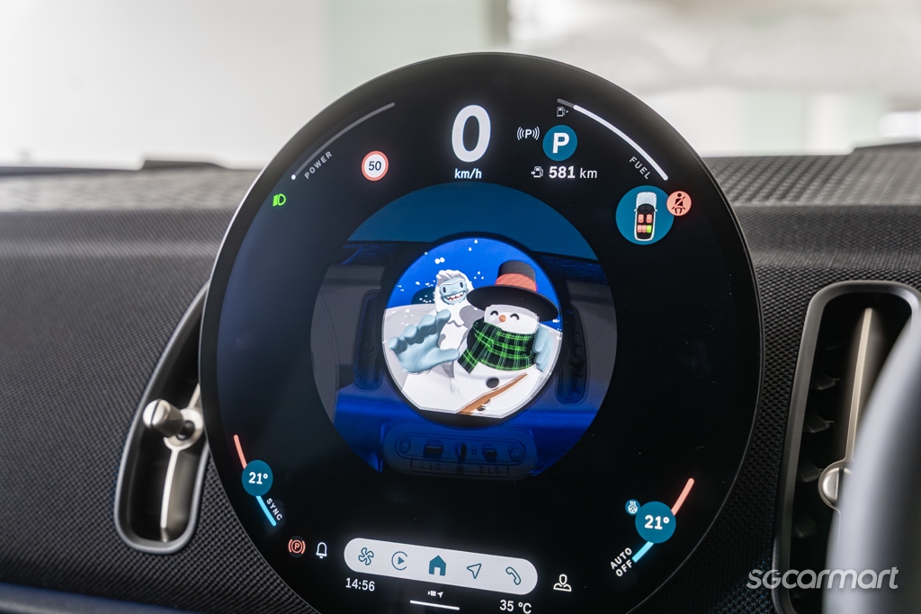 That round infotainment screen, those oblong-shaped air vents and door handles, along with playful graphics, are all cues to the Countryman's more exuberant character. And during the test drive, the car even had a 'winter surprise' - an animated video featuring a yeti and a snowman!