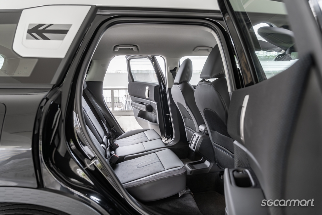 At the rear, passengers get air-con vents for enhanced cooling, a pair of USB-C ports to keep phones juiced up, and roomy door bins for loose items. However, the centre occupant will still feel awkward, not thanks to the floor hump, and oddly placed tray that protrudes from the centre console.