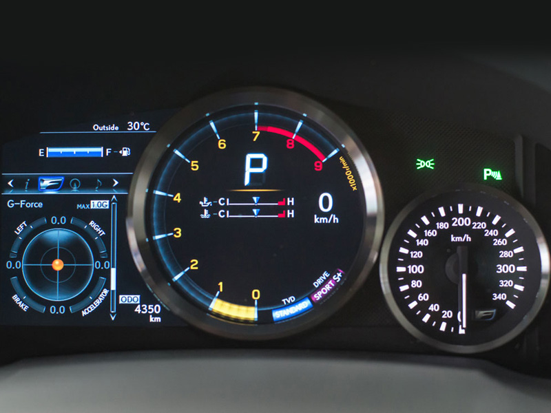 The interior of the RC F is swathed in typical Lexus richness, which is somewhat surprising considering the 'hardcore' nature of cars of its ilk. Everything is expensive to the touch, offering plush and luxurious comfort. Occasional carbon fire touches, blue stitching on the steering wheel and sports dials on the instrument cluster (with the car in Sport mode) hint at sports car that lies within.