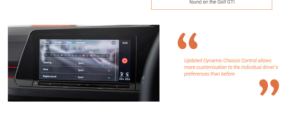 Now, the Mk8 Golf GTI is also tinkering with goodies from the 21st century. It offers more incremental damper settings to play around with its updated Dynamic Chassis Control (DCC), and boasts a fierce, red GTI-specific Digital Cockpit Pro instrument cluster. All over the car, you're reminded of this badge over and over - GTI, GTI, GTI.