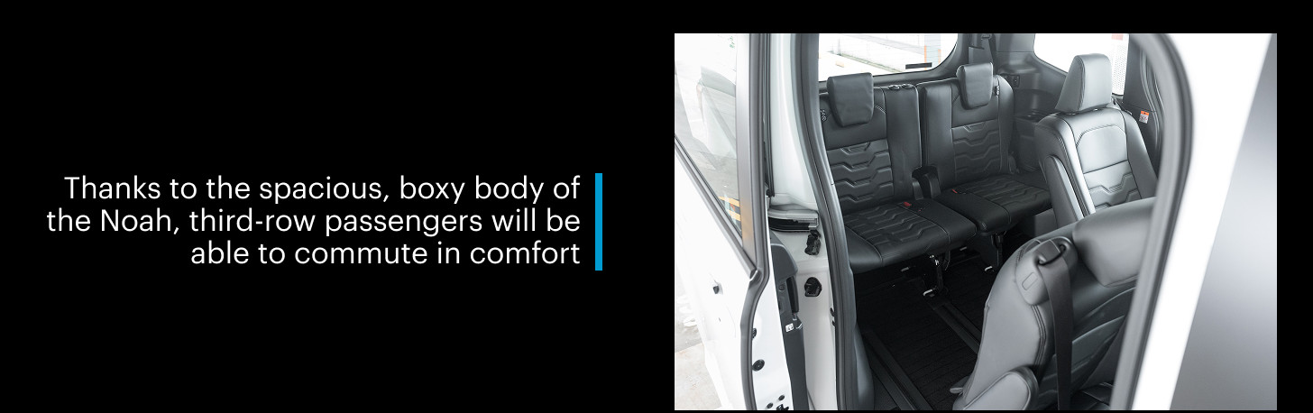 Well, this is a car that pairs impressive fuel efficiency with a cabin that will accommodate all the needs of your family with ease. Being one size smaller than large MPVs such as the Vellfire or Alphard, the Noah manages to be manoeuvrable even in tighter spaces, which is perfect for city driving here.