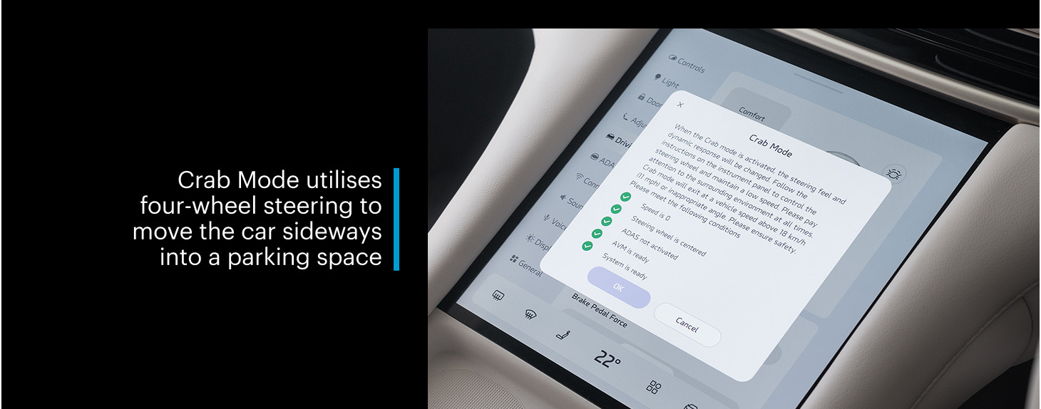 Its four-wheel steering for instance, shrinks turning circles at low speeds while providing greater stability when cruising. And it also lets the car 'crab walk' by moving laterally into parking spaces, making parallel parking a breeze.
