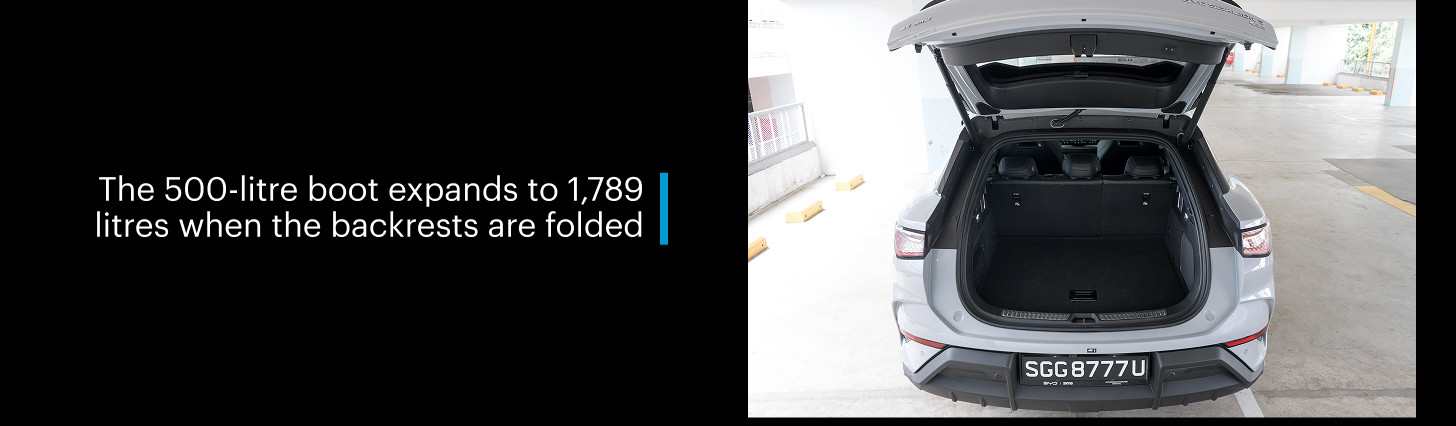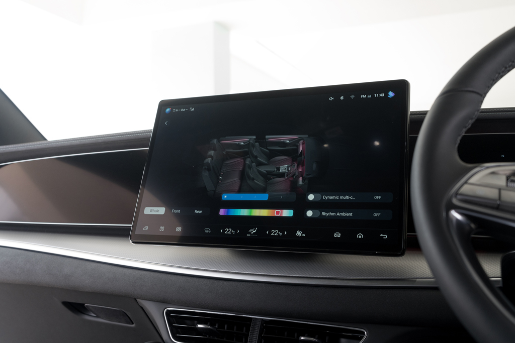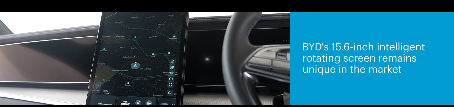 BYD isn't a premium brand, but the interior will make you assume otherwise. It's well put-together, with plenty of soft-touch materials that add to the refined atmosphere. The standard kit includes a 10.25-inch instrument panel, a 15.6-inch intelligent rotating infotainment display, a 12-speaker Dynaudio sound system, and a panoramic glass roof.