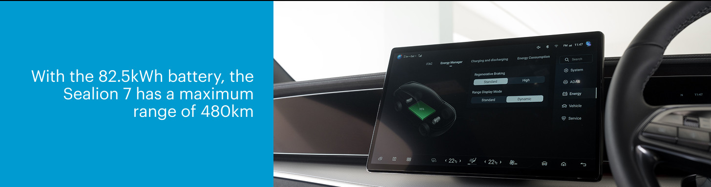 Further enhancing its appeal is the fact that the Sealion 7 is offered in three variants. The range begins with the Cat A-friendly Dynamic, with 100kW (134bhp) and a range of 405km. It's followed by the mid-tier Premium, with 230kW (308bhp) and 380Nm of torque, plus a 480km driving range.