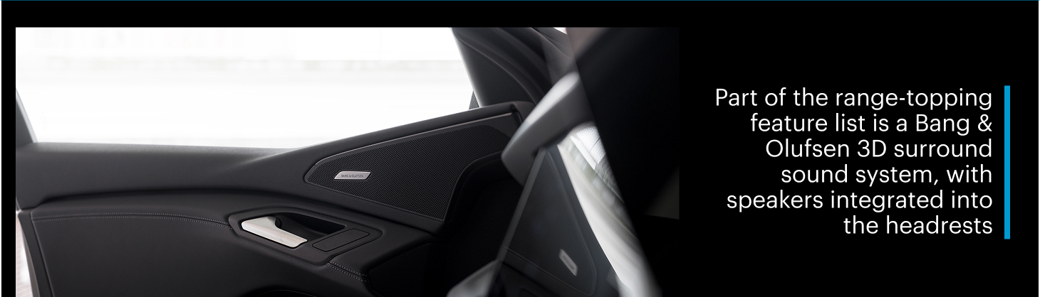 Comprising two crisp screens integrated in a curved panel tilted ergonomically towards the driver, Audi's new MMI infotainment system - offered as standard - is also already eye-catching. But the Edition 1 bumps things up further again with extra goodies. A large augmented reality heads-up display integrates your safety assistance warnings intuitively, and even responds to how aggressively you're driving (mash the accelerator to watch the speed reading suddenly balloon in size). There's also a brilliant Bang & Olufsen 3D sound system - with speakers embedded into the front head rests.