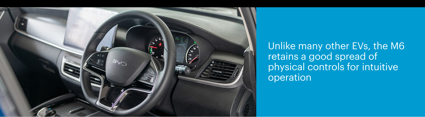 The interior is a similar success story. While the half-digital half-analogue instrument cluster isn't as modern as the ones you get on the BYD Seal or Sealion 7, the M6 more than compensates elsewhere with its satisfying feature spread.