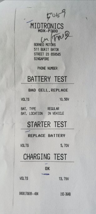 The next day I took my car to my agent workshop to check on the battery and alternator. A Midtronics battery test was done which found the battery verified with the same message BAD CELL, REPLACE. My alternator is still healthy and working well.