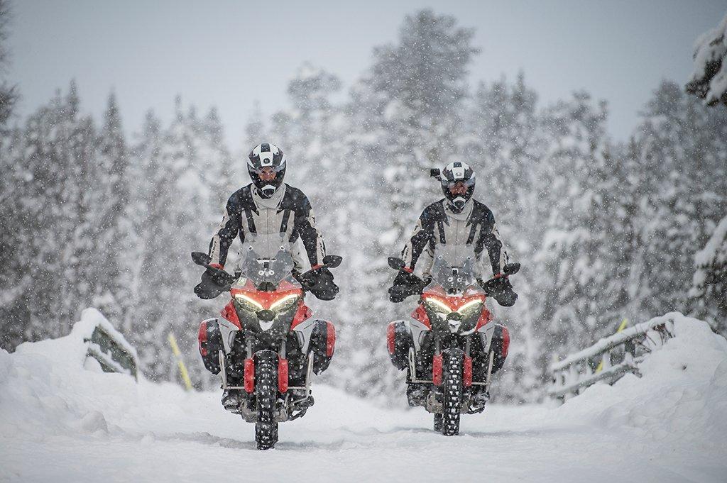 With advanced electronics, materials and technology, the new Ducati Multistrada V4 proved to be perfect travel companions They set themselves the task of putting the Multistrada V4 to the test in extreme conditions, with an adventure ending up in the Arctic Circle - a task that, aside from giving them an excuse to travel, would enable them to get their hands on and gain a comprehensive 360-degree understanding of this new motorcycle. To brave the harsh Arctic conditions, the pair also kitted themslves out with Dainese gear specifically designed to withstand the freezing northern temperatures.