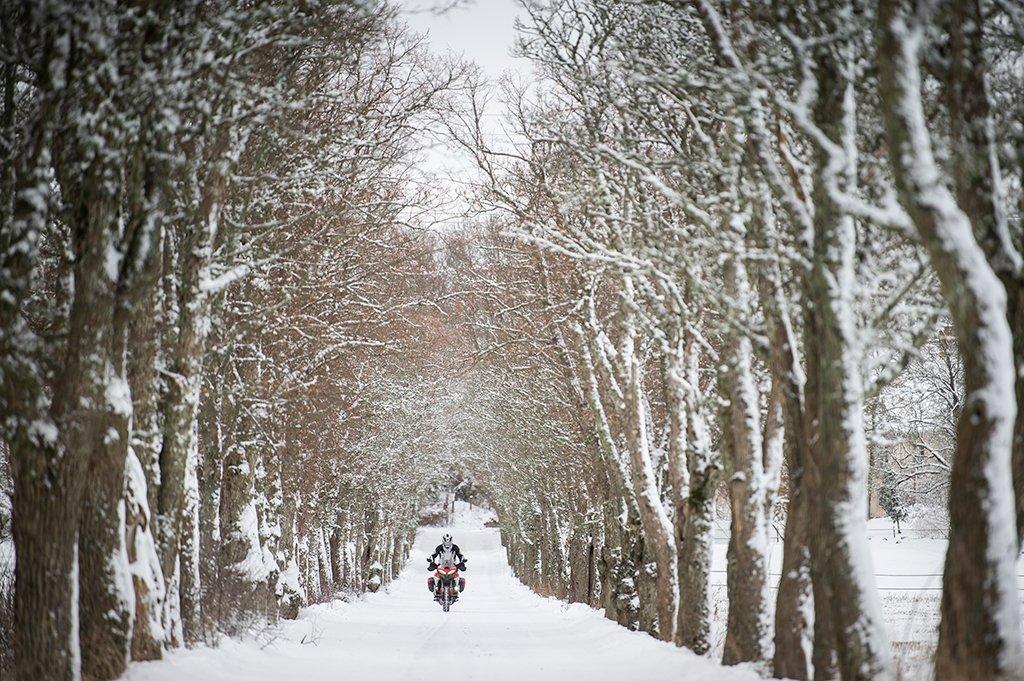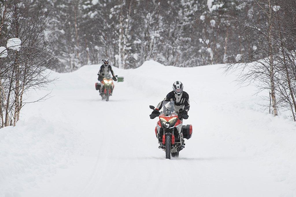 Through the remote wilderness of Lapland and on towards Villa Björklund, the enchanting snowy scene, covered by a blanket of pure white, was only broken by the red of the Ducati bikes.