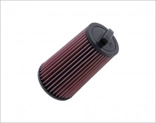 A round-shaped high performance replacement air filter designed in a height of 273mm with an outer base diameter of 106mm and a top outer diameter of 102mm.