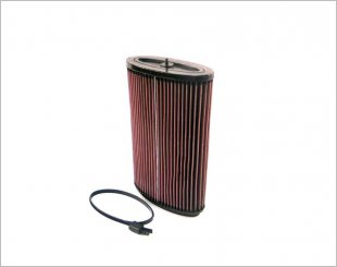 An oval tapered air filter designed in a height of 294mm with an outer base length of 189mm and width of 79mm and a top outer Length of 197mm and width of 86mm.