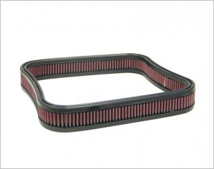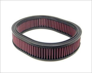An oval tapered air filter designed in a height of 338mm with an outer base length of 143mm and width of 86mm and a top outer Length of 117mm and width of 79mm.