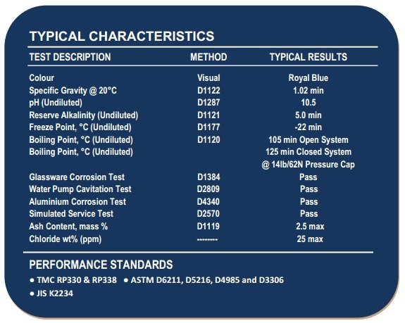 - Improved protection from liner piting, scale, aluminium corrosion and water pump seal leakage