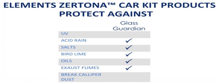 The Zertona Glass Guardian prevents diesel soot and other residues from sticking to the glass surface, which cause damages to the windscreen wiper blades. After application, with the hydrophobic properties, the large raindrops even run off the windscreen thus giving a clear view while driving in a heavy downpour.