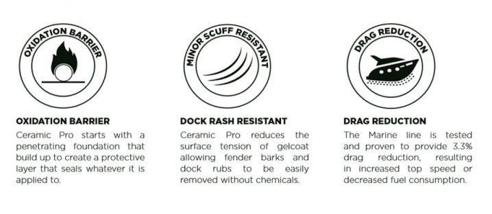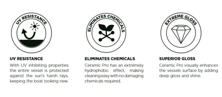 Ceramic Pro Marine protects the surface of any vessel above and below the waterline. Harsh exploitation conditions are a well-known issue for the yachts and boat owners. Creating a protective barrier, Ceramic Pro prevents oxidation of treated surfaces and growth of sea organisms and algae on the Bottom.