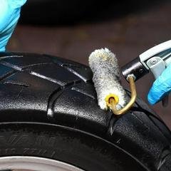 The cleverly designed roller ensures even distribution and cuts down on wasted liquid. And if you can rotate the tyres at the same time, the application process literally takes seconds.