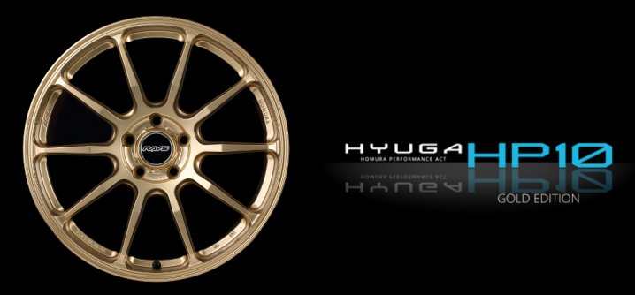This gold color—developed through painstaking tone adjustments—highlights the HYUGA design's bold edges and enhances the form of the spokes. The power and prestige of the gold explode from the hub in a surge of energy to give your car the aggressive look you want.