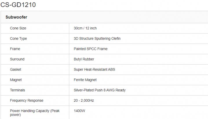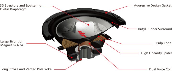 The drvn subwoofer delivers dynamic sound with more aggressive-looking design. The dual voice coil CS-GD1210 comes with a large magnet for powerful sound, while the butyl rubber surround provides strong deep bass.