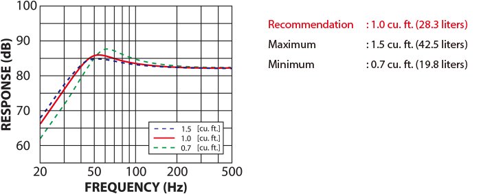 Recommended Enclosure Volumes for One Subwoofer Unit: