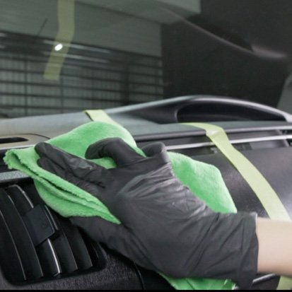 1) Shake bottle well, spray onto microfiber towel and apply.