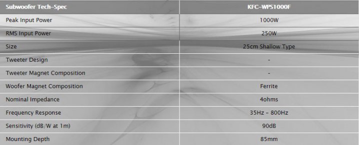 Kenwood KFC-WPS1000F 25cm Shallow Subwoofer
