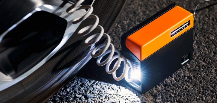 An all-in-one inflator with a spacious compartment on the back, containing a 3.3m (11ft) power cord and two nozzle adapters.