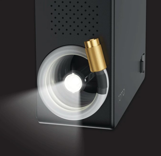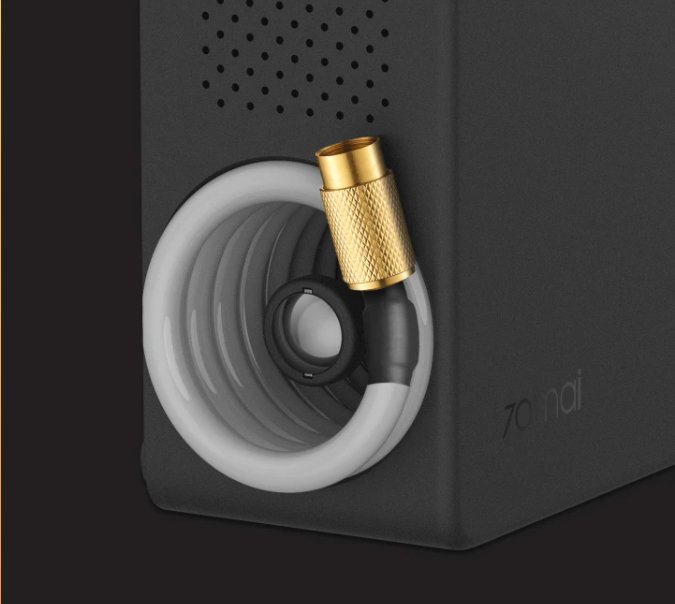 The coiled PU tube is located right inside the inflator, convenient while non-obstructive to the machine's sleek look. Just pull it out and start pumping, whenever and wherever you need.