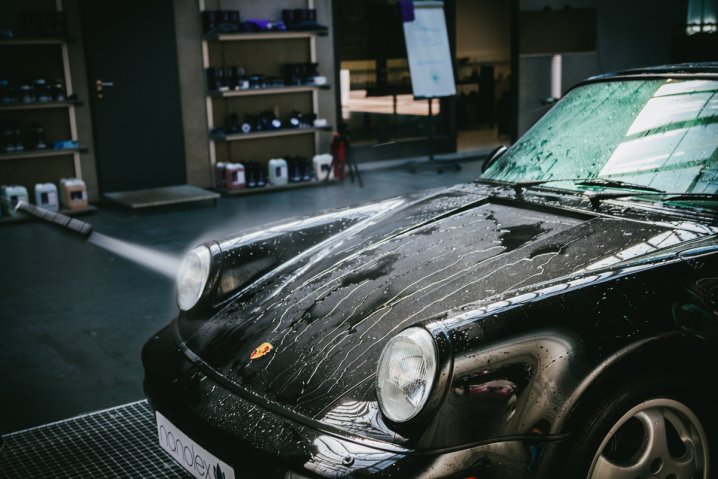 Apply to the whole surface, allow it to react for a short time, and then use a pressure washer to rinse the product off thoroughly. Avoid applying Nanolex Insect Remover in direct sunlight, and do not let the product dry before rinsing.