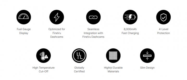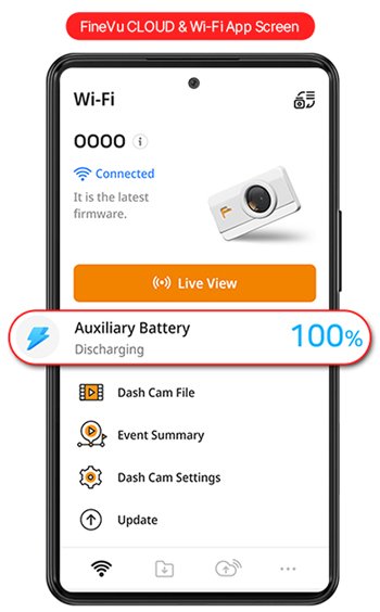 The built-in Stop Mode in the battery pack works in tandem with FineVu dashcams to significantly extend usage time.