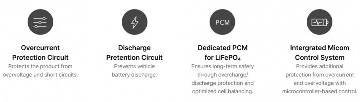 Fast charging protection, overcharge, over-discharge, overvoltage, and short-circuit protection |