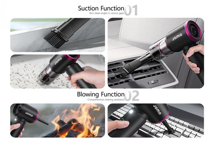 Meet the ultimate cleaning companion for your car and home! The JOMO 5-in-1 Cordless Handheld Vacuum combines ultra-strong suction, smart multi-function design, and lightweight portability to tackle messes anywhere with ease.