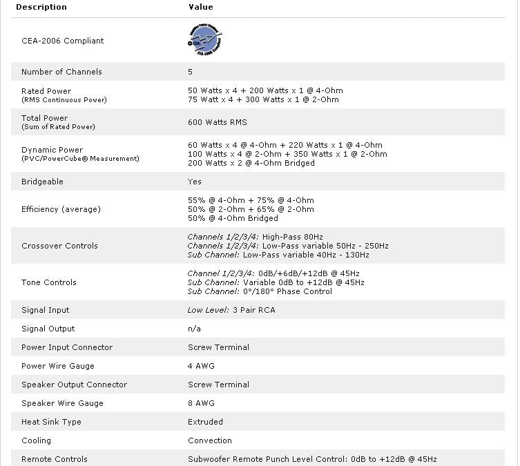 The Prime R600-5 amplifier produces up to 75 Watts into each of its 4-channels plus 300 Watts into a dedicated 5th (subwoofer) channel. This 5-channel design makes it the perfect amplifier when you want one amplifier to run it all! The Prime series offers quality and power from Rockford Fosgate at a great price. Car Audio Fanatics rock out!