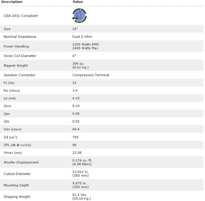 spacer Description The upgraded Power T2D215 subwoofer has a new bad-ass look having revised components over the previous model.