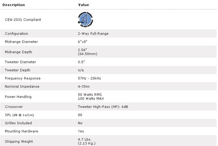 The R1682 is a 6”x8” 2-way full-range speaker rated at 50 watts RMS for a new generation of factory replacement speakers. Kit includes integrated high-pass crossovers and mounting hardware.