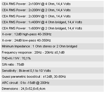 - "Smart Engage" technology (High level input with automatic switch on, cables included)