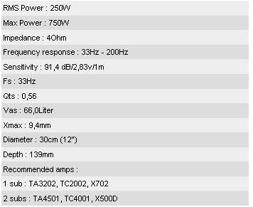 Subwoofer 30cm 250W 4 Ohm.